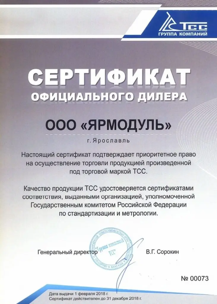 Лицензия официального дилера ГК ТСС