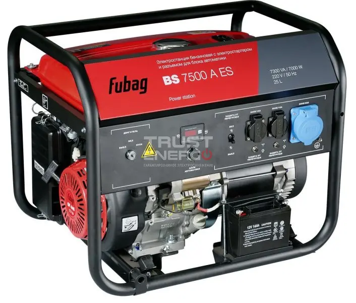 Бензиновый генератор Fubag BS 7500 A ES номинальной мощностью 7 кВт с двигателем Fubag - отличный электроагрегат демонстрирующий уверенный приём нагрузки как резервный источник питания, так и основной.