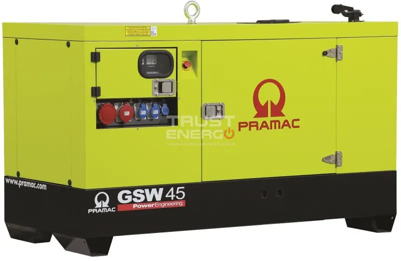 Дизельный генератор Pramac GSW 45 P В кожухе с АВР номинальной мощностью 37 кВт с двигателем Perkins - отличный электроагрегат демонстрирующий уверенный приём нагрузки как резервный источник питания, так и основной.