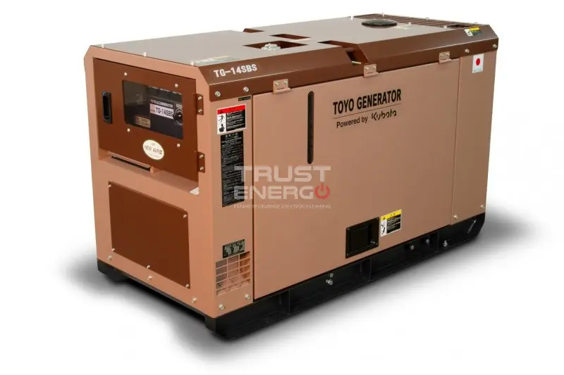 Дизельный генератор Toyo TG-14SBS с АВР номинальной мощностью 11 кВт с двигателем Kubota - отличный электроагрегат демонстрирующий уверенный приём нагрузки как резервный источник питания, так и основной.