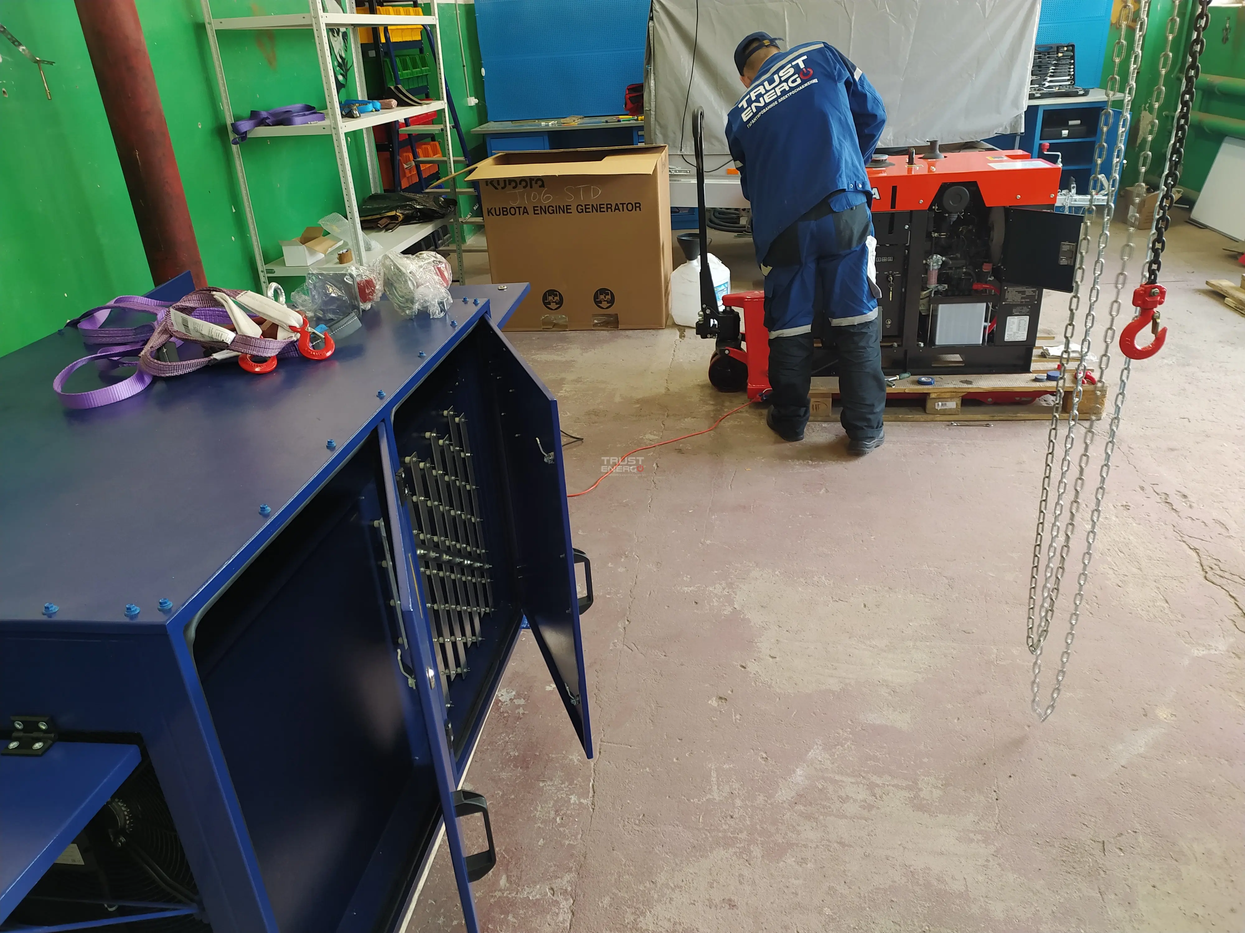 Траст-Энерго осуществила сервисные работы для японского дизель генератора Kubota J 112 в г. Новороссийск. ДГУ используется как запасной источник питания в загородном коттедже. Заказчику было необходимо произвести сервисное обслуживание после пользования генератором около 2000 моточасов. В ходе работ были произведены замены жидкостей, фильтров, а также проведены диагностические работы. Нашими сервисными мастерами были даны рекомендации по эксплуатации и уходу за генератором.